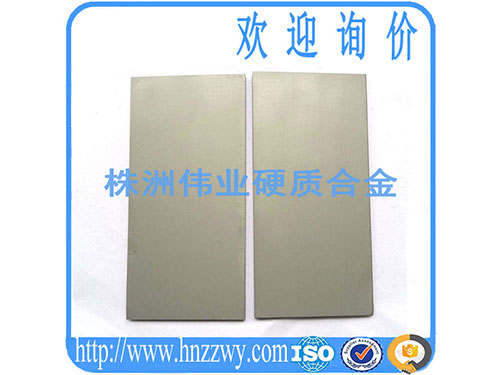 硬质合金板材,又叫钨钢板材,是一种方形的钨钢材料。有的是正方形,也有的是长方形。在模具厂,制作模芯、镶件、异形冲子、耐磨零件等。 硬质合金板材/钨钢板材有厚板和薄板之分,超厚和超薄的都比较难加工,超薄的产品在烧结的时候容易变形,如果烧结不好的钨钢薄板,出来就像一个拱桥。而太纯的板材,在挥发结合剂的时候,比较难挥发,从而容易形成一些细小的砂孔。 硬质合金/钨钢板、板材特点: 1、优良的热稳定性和高温抗变形; 2、在高温下的机械温度高; 3、良好的抗热震性、高导热; 4、优秀氧化控制能力; 5、在高温下的耐腐蚀性; 6、高耐磨性、使用寿命长;