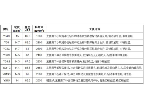 硬质合金地质矿山工具制作原料基本属WC-Co类合金,多为两相合金,主要是粗晶粒合金。根据凿岩工具不同、岩石硬度不同,或者在钻头不同部位,矿山工具的磨损程度不同,要求WC平均晶粒、含钴量也不同。 株洲伟业硬质合金实业有限公司专业生产硬质合金矿山工具,采用先进工艺,高纯原料生产,抗冲击性高,耐磨性好,适合矿山开采,隧道工程打炮眼,质量可靠,牌号多样。 1. 能满足各种砂石岩层的需求。 2. 采掘过程中不断齿,使用寿命长。 产品牌号推荐及相关性能参数